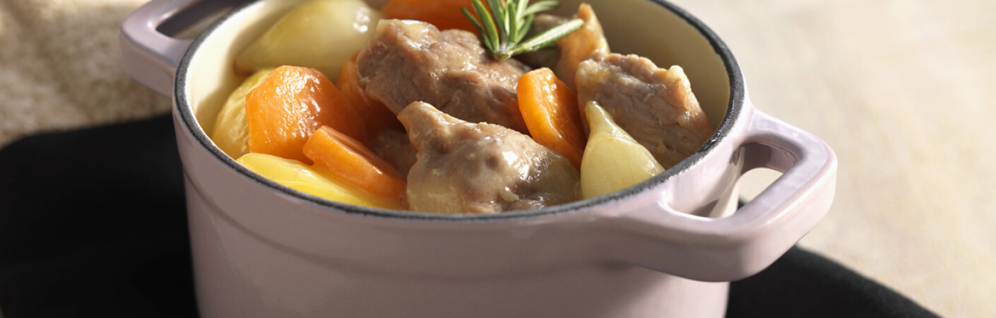 - Dans un faitout, faites revenir la viande avec du beurre (5 min). Une fois les morceaux colorés, ajoutez 2 litres d’eau froide, 20g de gros sel, une pincée de poivre et les feuilles de laurier. Faites bouillir puis couvrez avec un couvercle et cuire à feu doux pendant 15 min. Pendant ce temps, préparez les légumes.