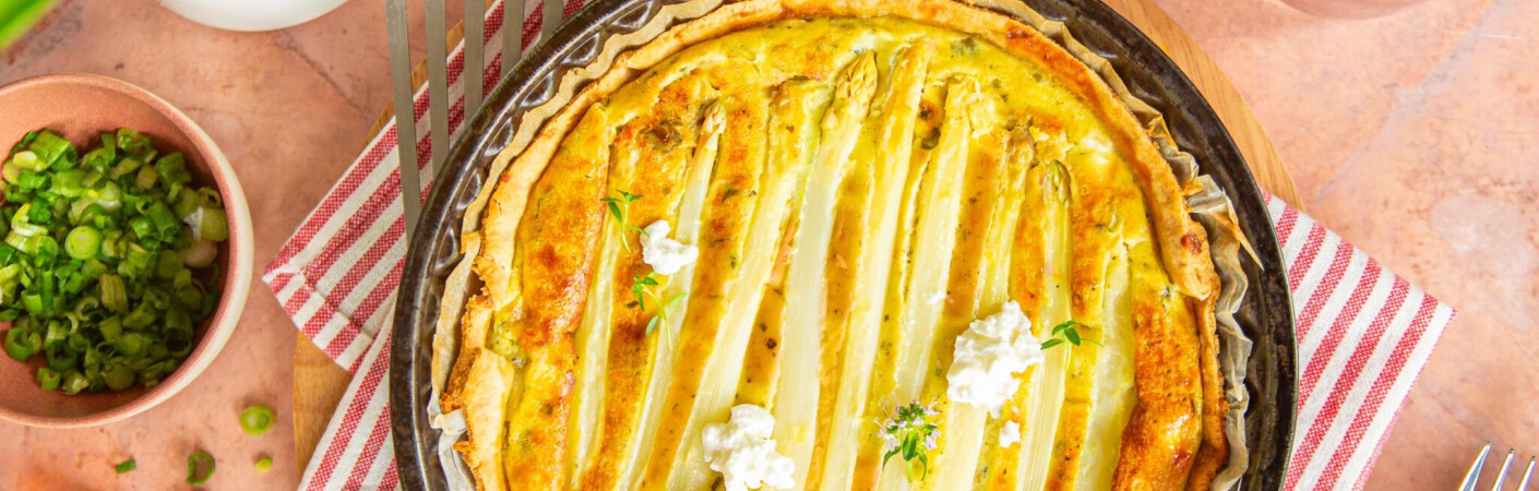 - Quiche aux asperges blanches, chèvre frais & basilic